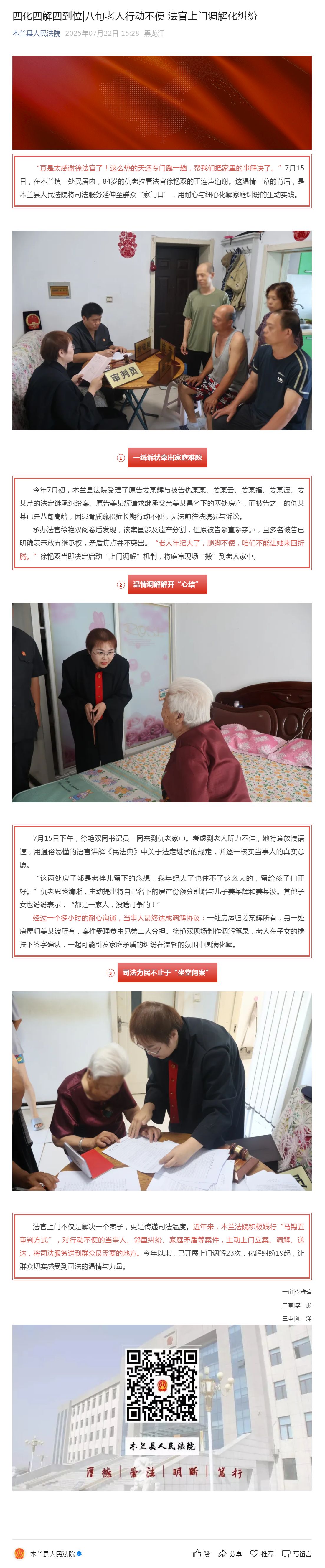 四化四解四到位_八旬老人行动不便 法官上门调解化纠纷