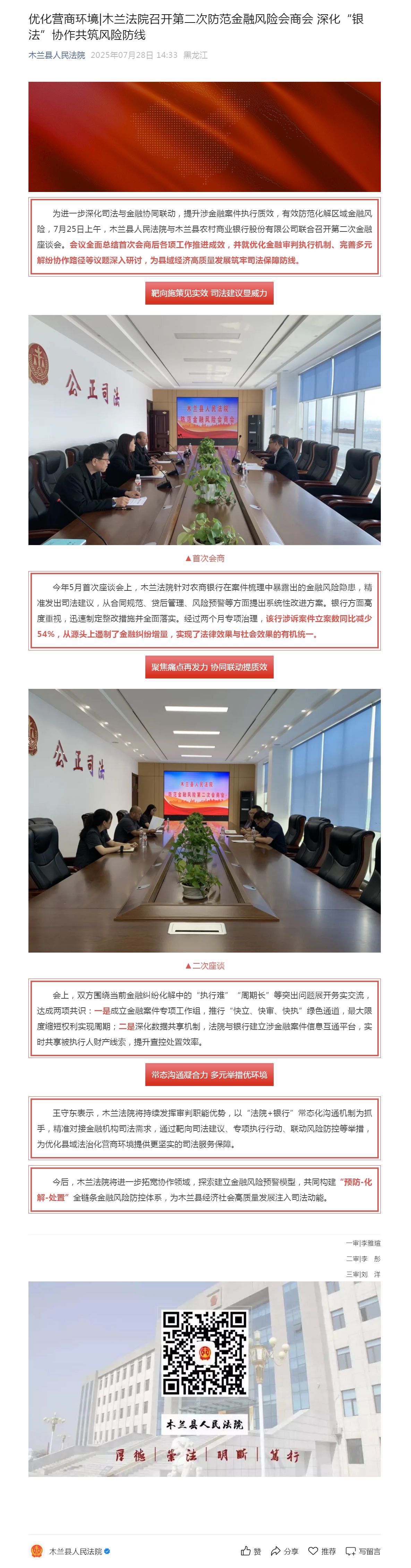 优化营商环境_木兰法院召开第二次防范金融风险会商会 深化“银法”协作共筑风险防线