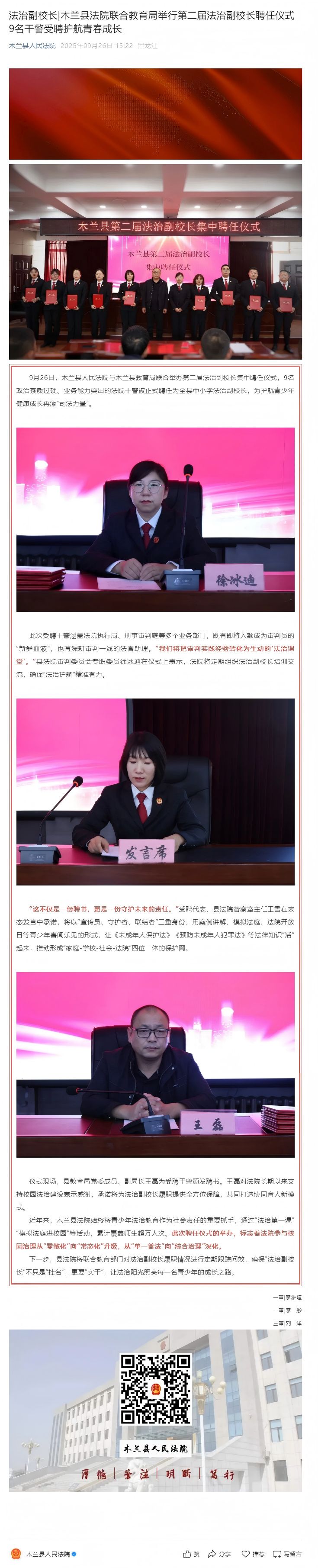 法治副校长_木兰县法院联合教育局举行第二届法治副校长聘任仪式 9名干警受聘护航青春成长