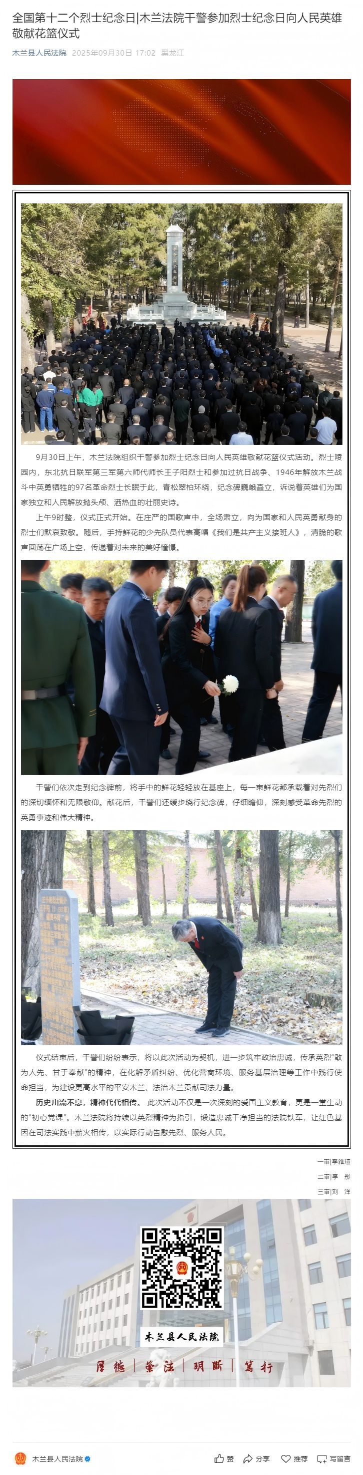 全国第十二个烈士纪念日_木兰法院干警参加烈士纪念日向人民英雄敬献花篮仪式