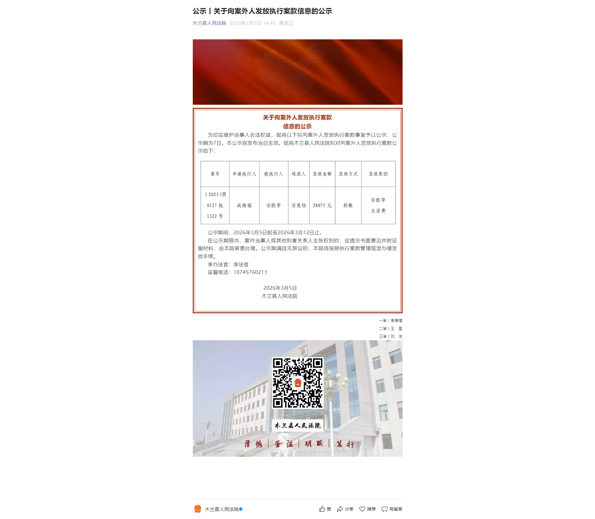 公示丨关于向案外人发放执行案款信息的公示