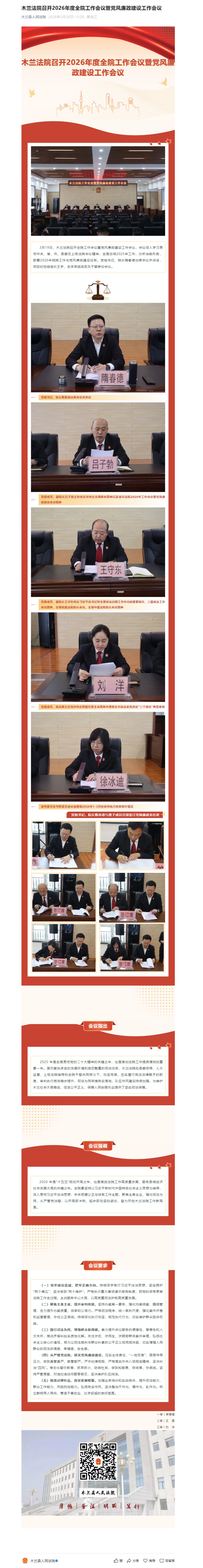 木兰法院召开2026年度全院工作会议暨党风廉政建设工作会议