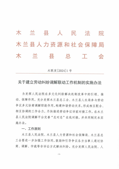 木兰县法院关于建立劳动纠纷调解联动工作机制的实施办法