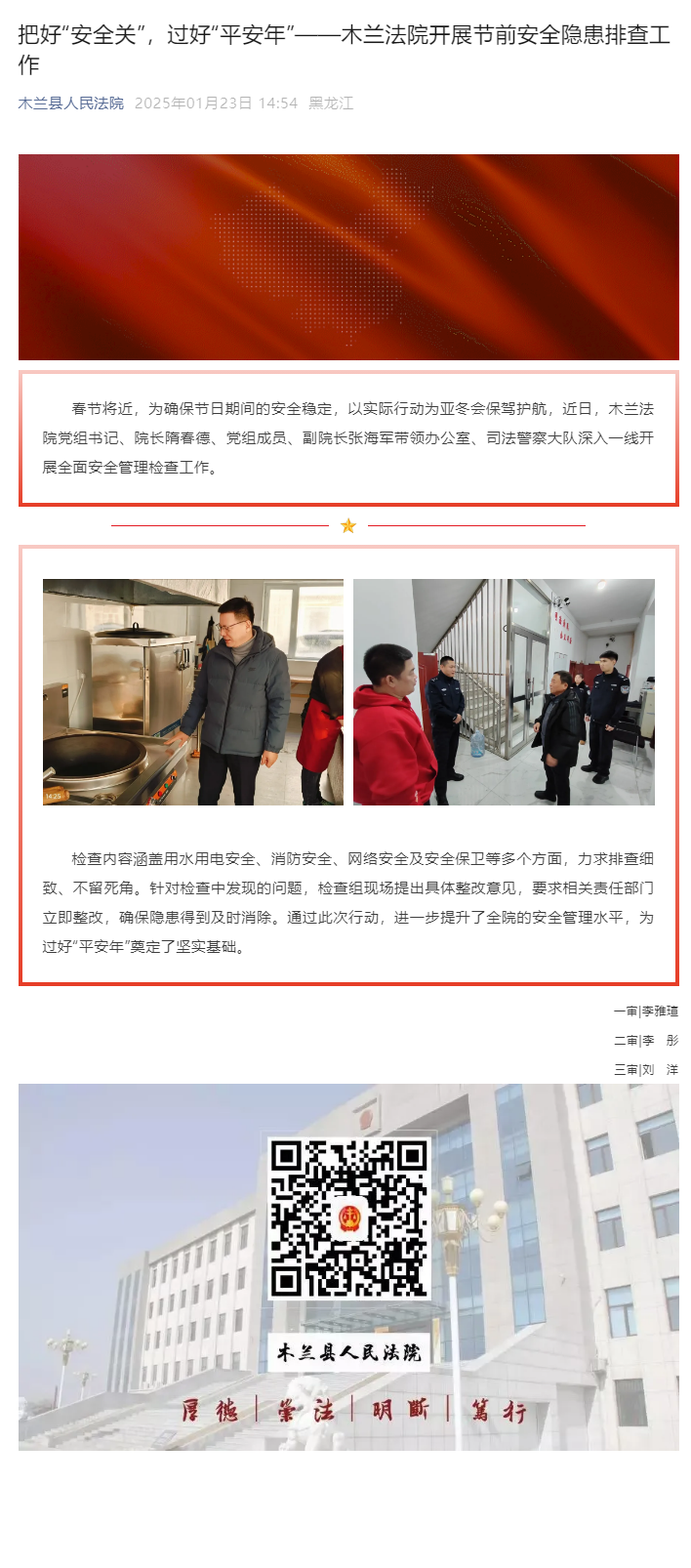 把好“安全关”,过好“平安年”——木兰法院开展节前安全隐患排查工作