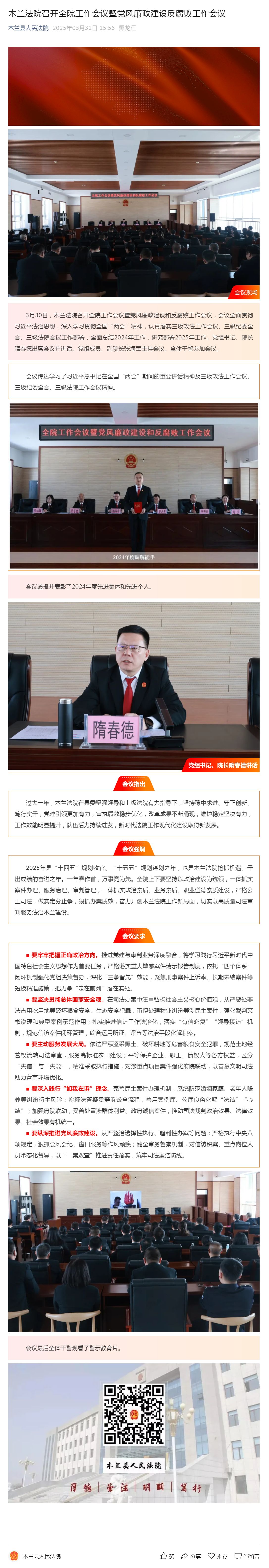 木兰法院召开全院工作会议暨党风廉政建设反腐败工作会议