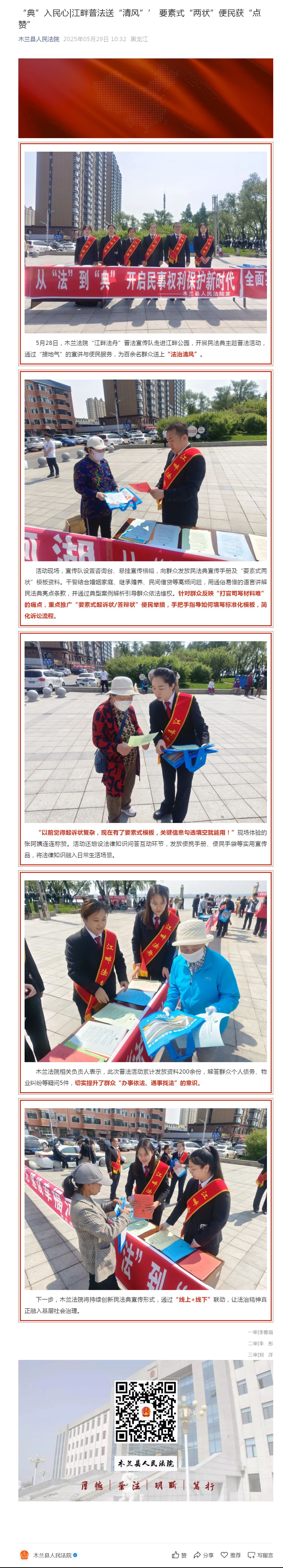 “典”入民心_江畔普法送“清风”’ 要素式“两状”便民获“点赞”